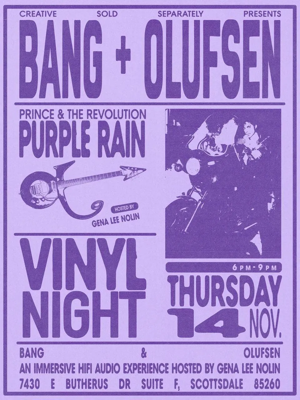 Come join us at Bang & Olufsen Scottsdale for a groovy Purple Rain vinyl listening party - it's going to be a vibe!